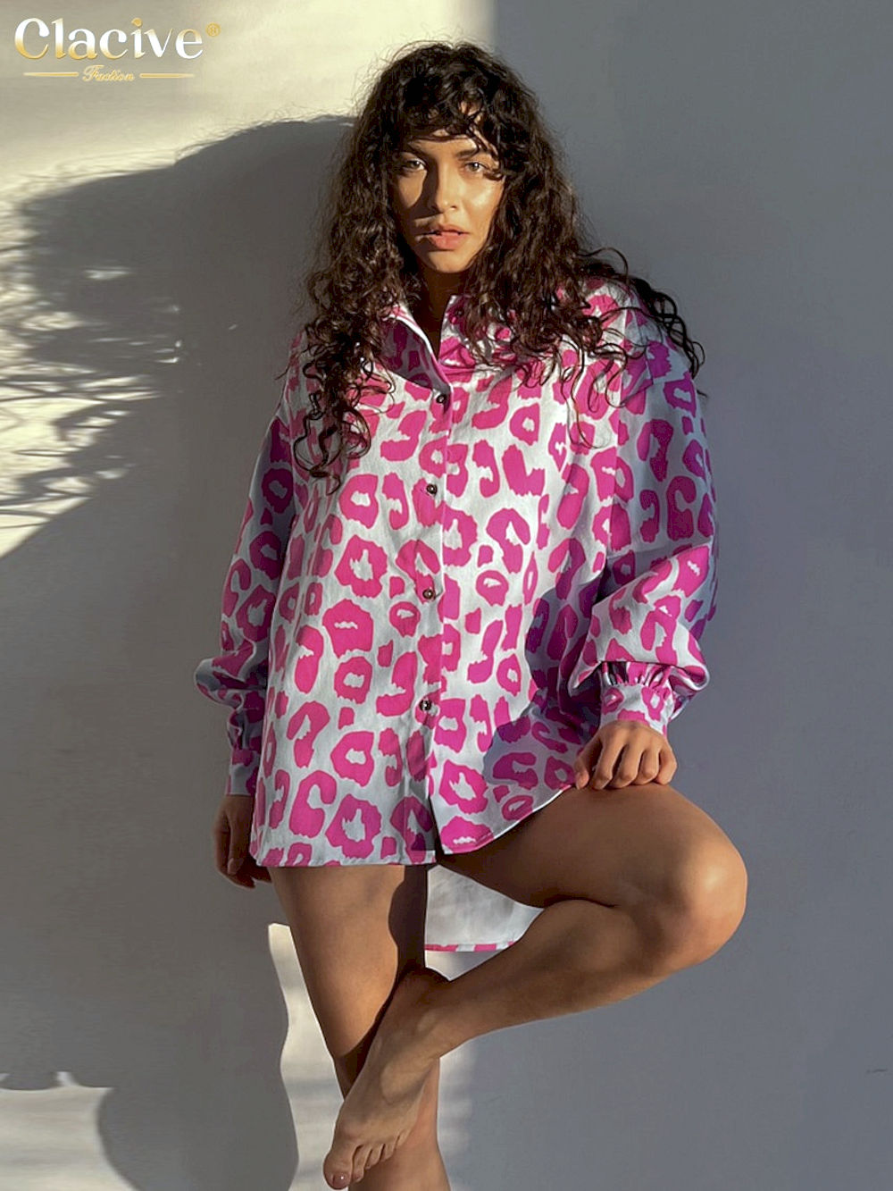 Compra Online Blusas con estampado de leopardo para mujer, camisa de manga larga con solapa elegante, tops clásicos informales, ropa femenina