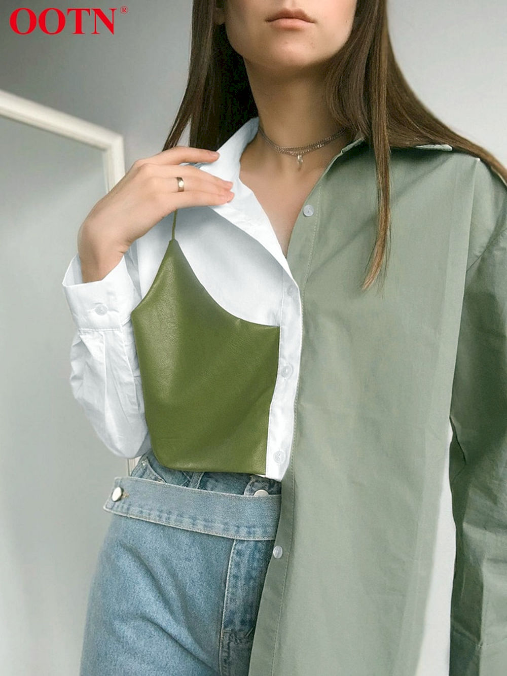 Compra Online Blusas de manga larga holgada para mujer, camisa de retales a la moda, ropa de calle elegante, tops para mujer