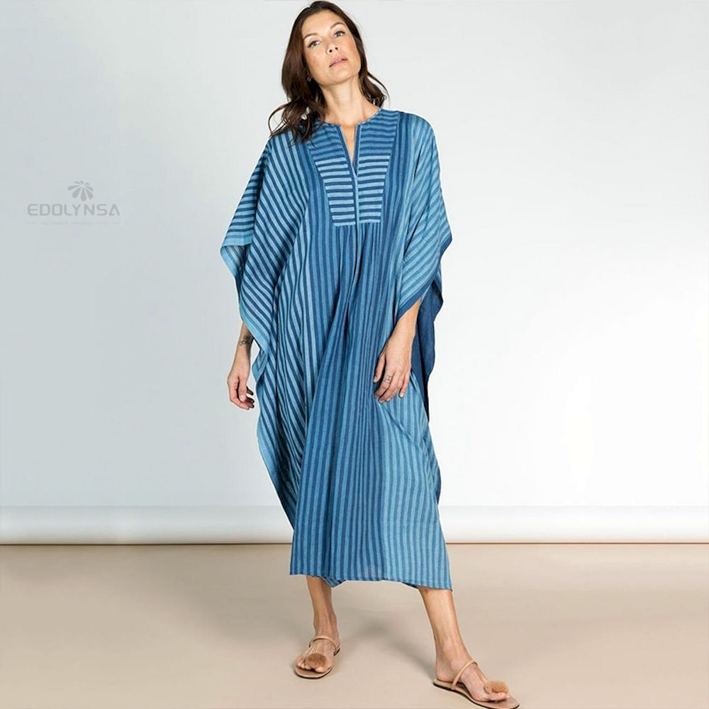 Caftán informal a rayas para mujer, Vestidos largos holgado vintage de talla grande, ropa de playa, túnica de verano.,