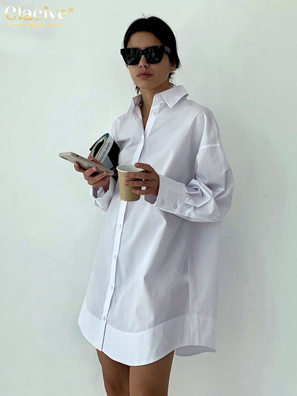 Camisa de tapeta holgada blanca para mujer, Blusas informal de manga larga con una hilera de botones para oficina, otoño,