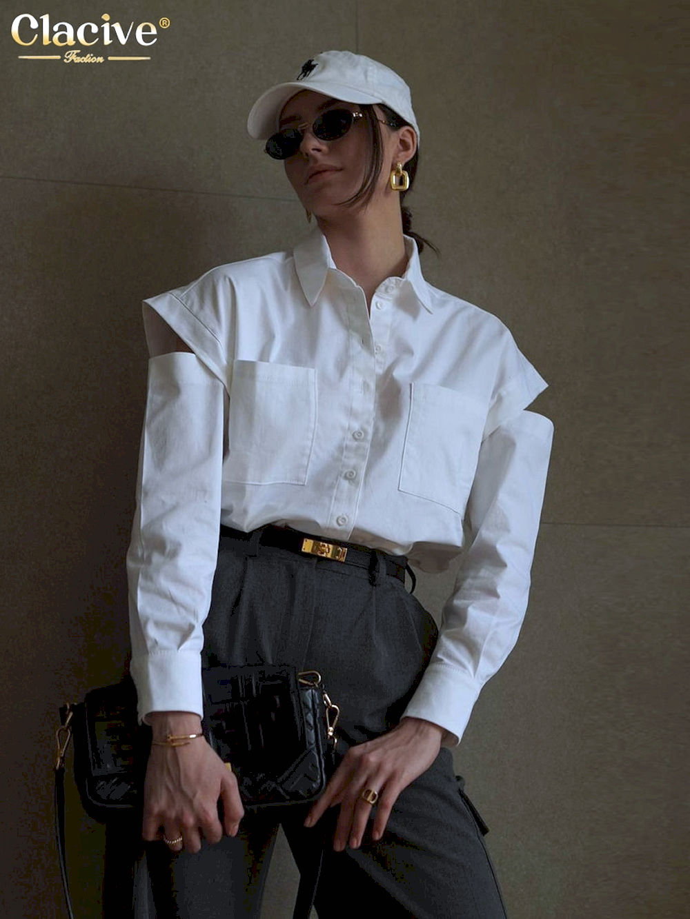 Compra Online Camisa holgada de manga larga con solapa para mujer, camisa elegante de oficina, blusas, tops