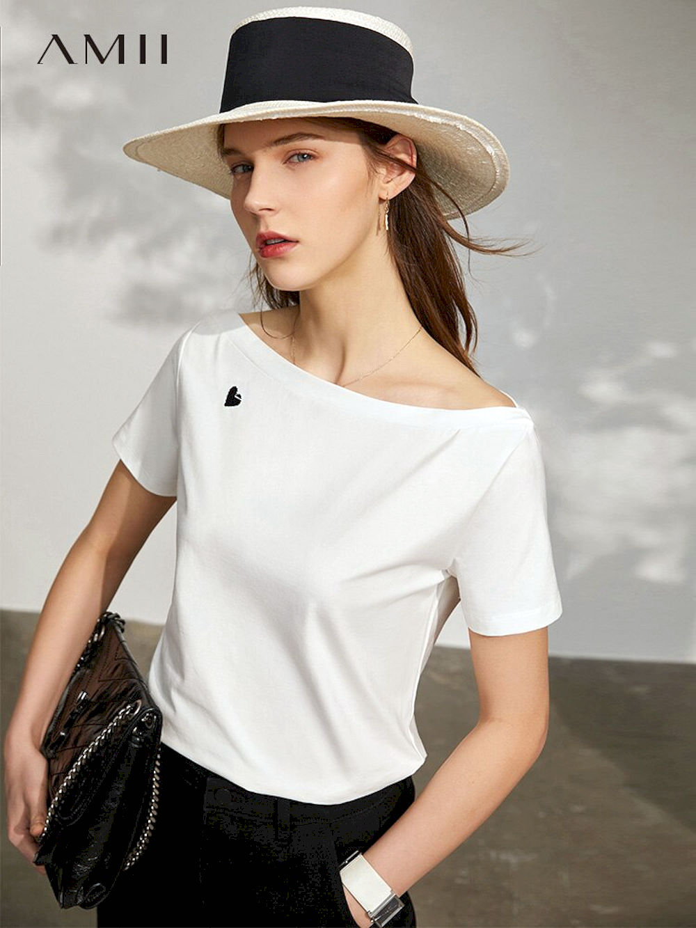 Compra Online Camisetas de verano minimalistas de para mujer, ropa con letras bordadas informales, con cuello de barco,
