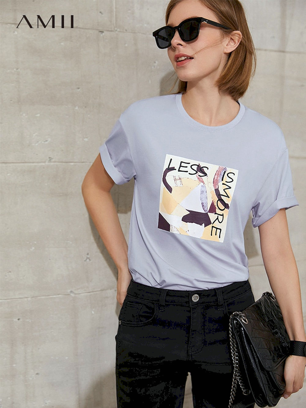 Camisetas minimalistas para mujer, tops de algodón elásticos de gran tamaño con manga corta y cuello redondo, ropa para jóvenes,