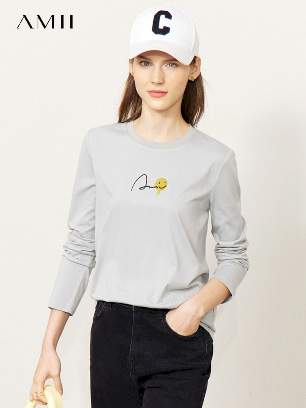 Compra Online Camisetas minimalistas para mujer, Camisetas harajuku con estampado de cara sonriente en contraste, tops holgados de algodón