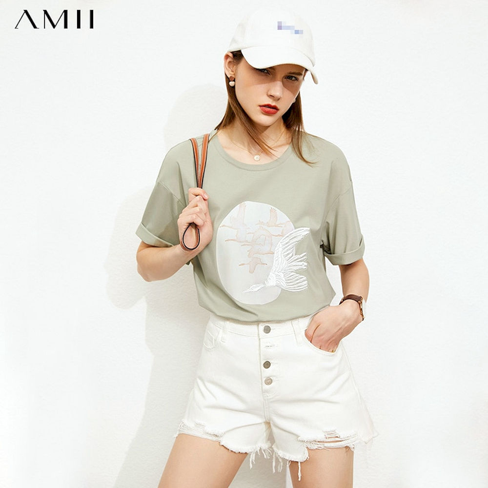 Compra Online Camisetas minimalistas para mujer, tops holgados con cuello redondo vintage estampados, Camisetas informal para mujer