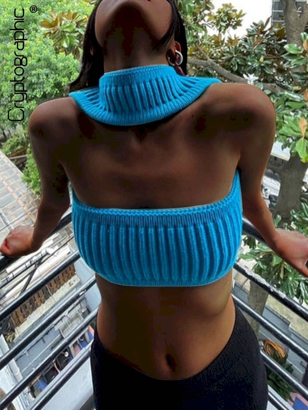 Compra Online Camisetas sin mangas de punto de algodón para mujer, top cortos con cuello halter para mujer, trajes de verano yk, top de tubo sin tirantes y espalda descubierta