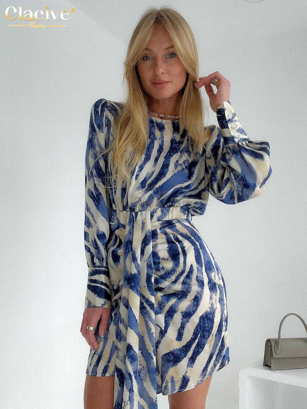 Compra Online Holgado Vestidos cortos de manga larga con cuello redondo para mujer, Mini Vestidos de oficina vintage de cintura alta con cordones