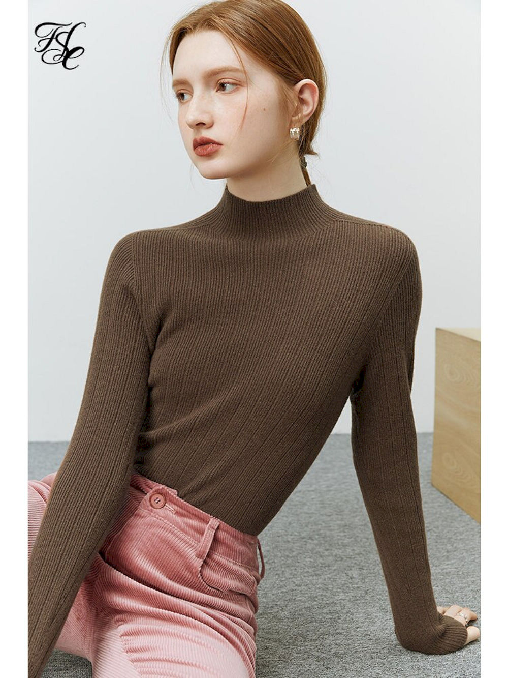 Compra Online Suéteres de lana con cuello medio alto para mujer, Suéteres versátil con parte inferior delgada, estilo informal, interior liso, otoño e invierno