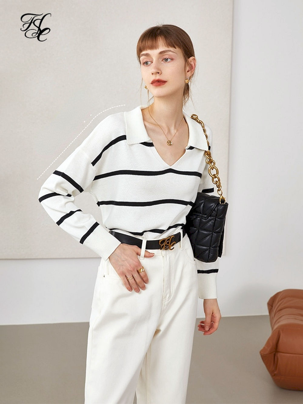 Compra Online Suéteres de manga larga para mujer, tops a rayas retro francés, blusas holgadas y delgadas, jerseys para mujer