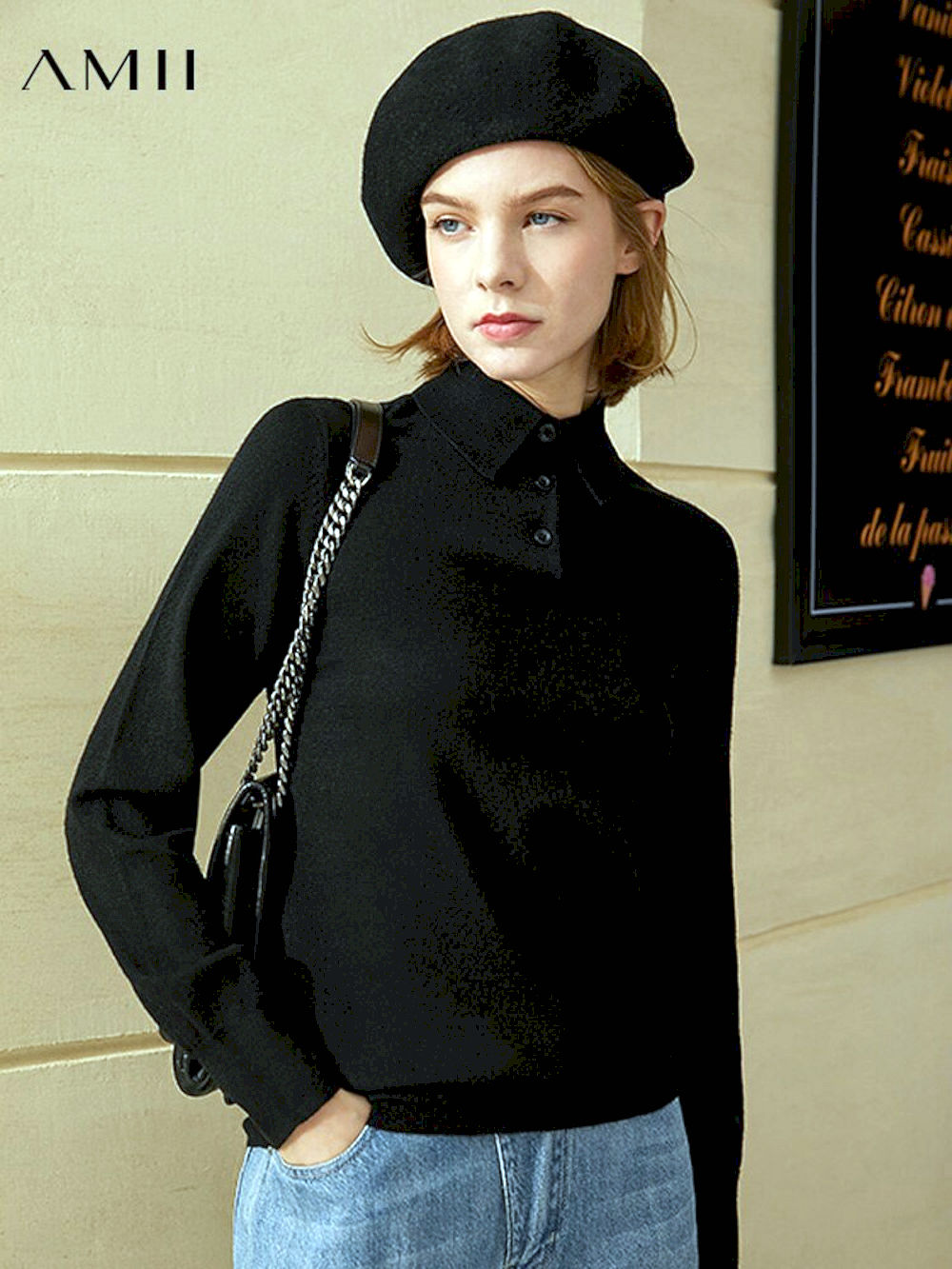 Compra Online Suéteres minimalistas informal para mujer, jersey de punto con solapa lisa, polo, tops para mujer, otoño e invierno,