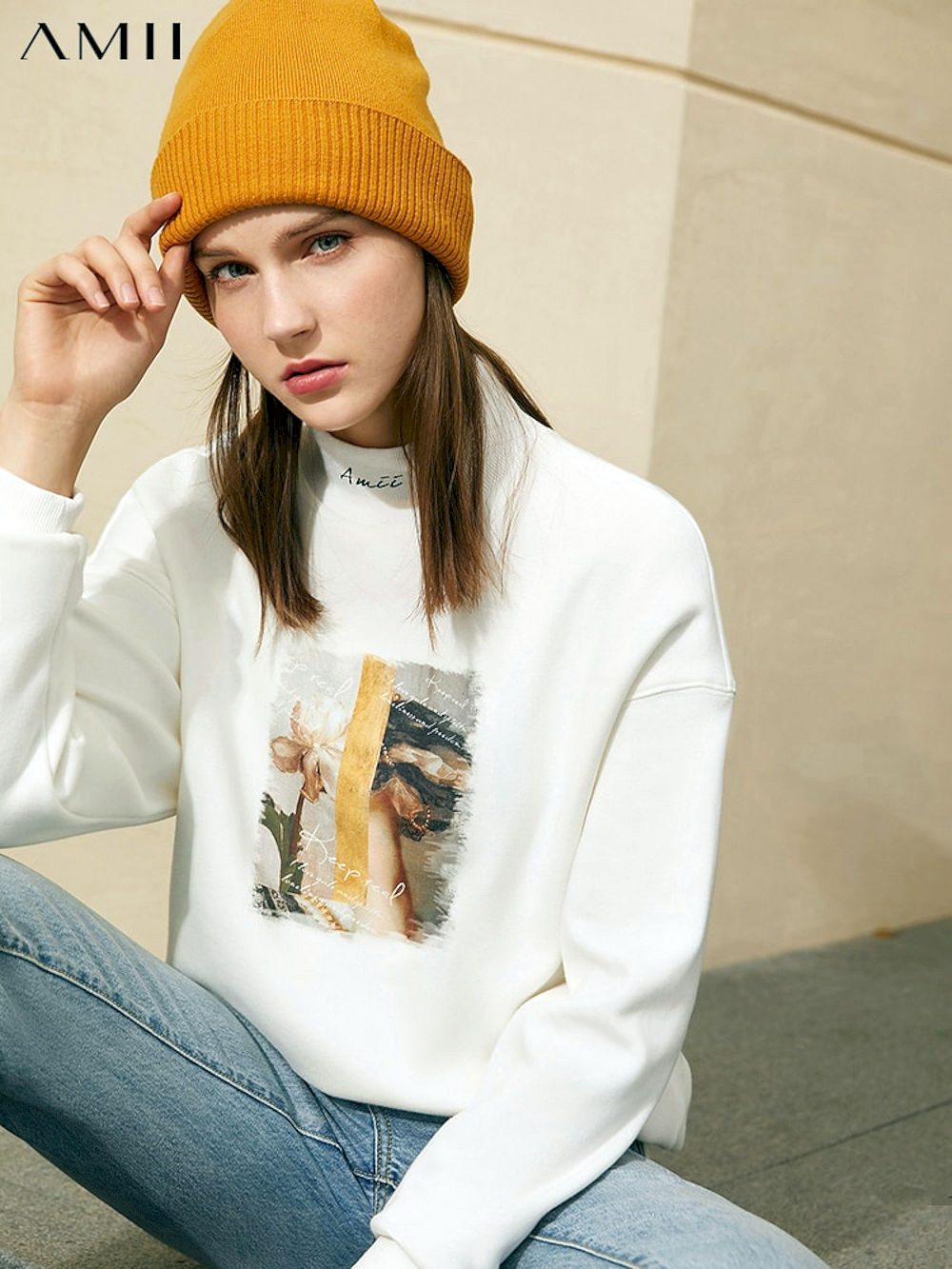 Compra Online Sudadera informal minimalistas para mujer, Suéteres de manga larga con cuello levantado, estampado, primavera,
