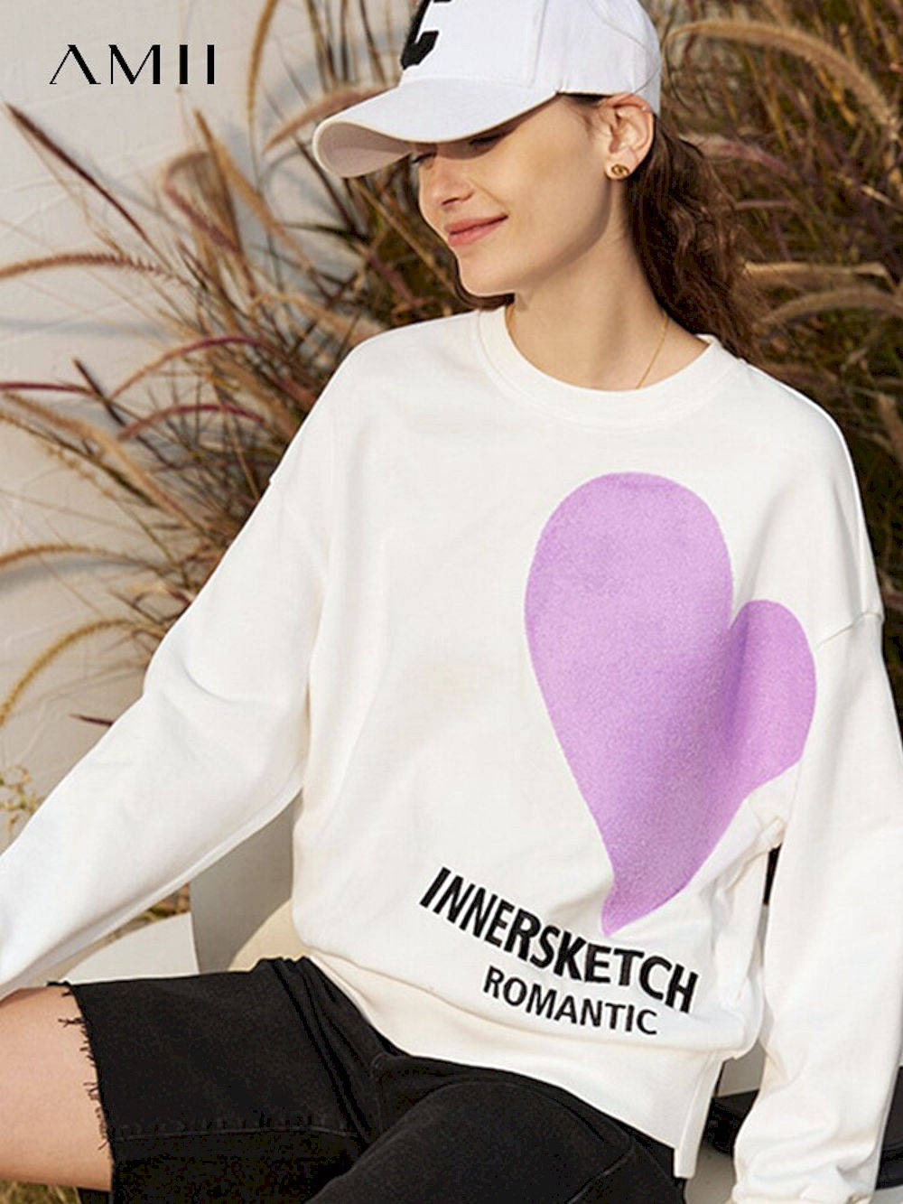 Sudaderas minimalistas para mujer, jersey informal con diseño de nicho, algodón, estampado de corazón dulce, tops elegantes %