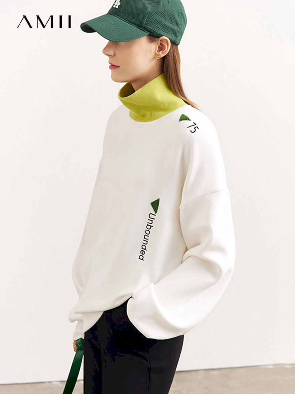 Sudaderas minimalistas para mujer, sudadera holgada con cuello alto y letras bordadas, ropa con capucha,