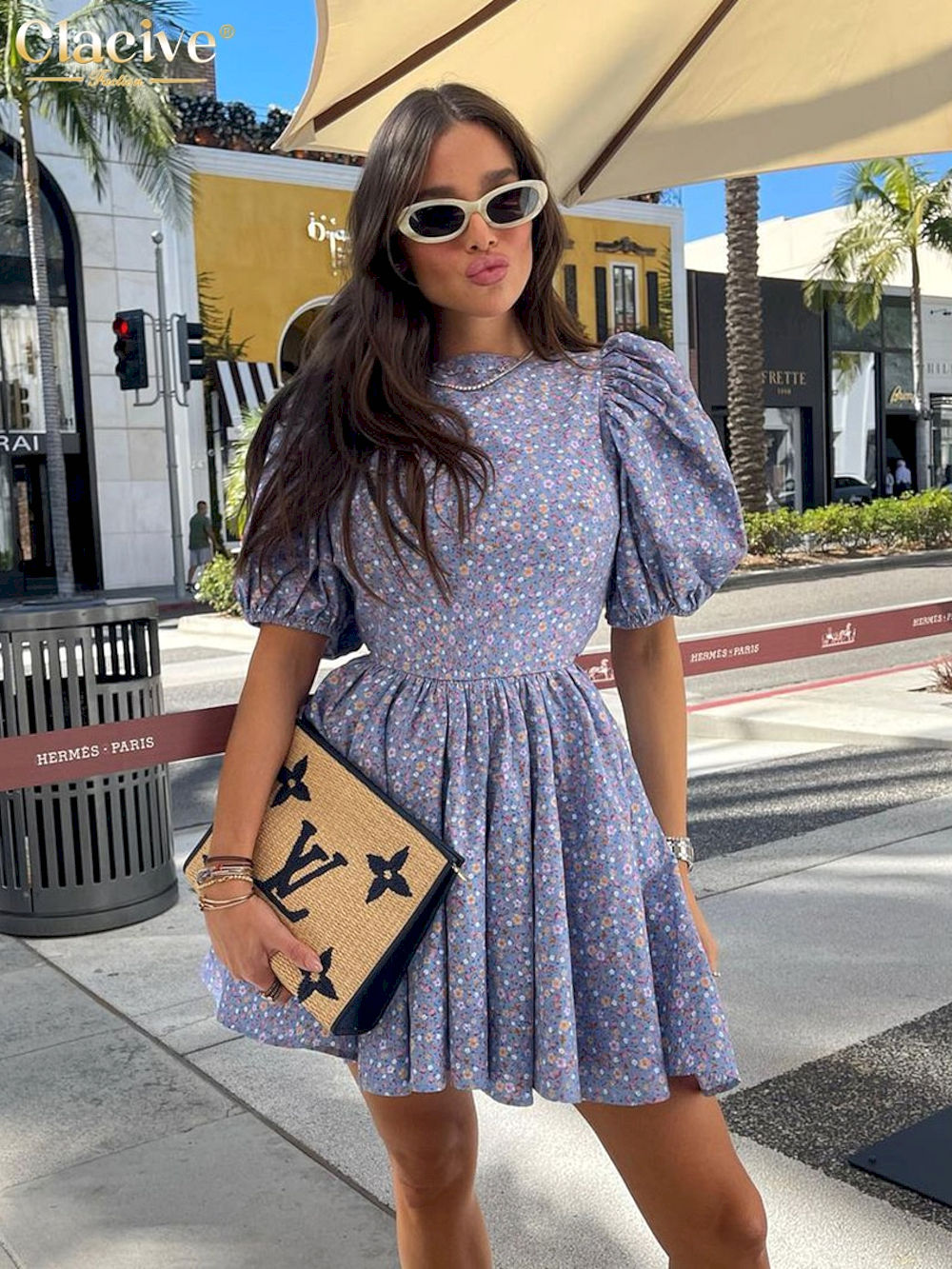 Compra Online Vestidos ajustado de manga corta con cuello redondo para mujer, Mini Vestidos informal plisado de cintura alta, elegante. la moda,