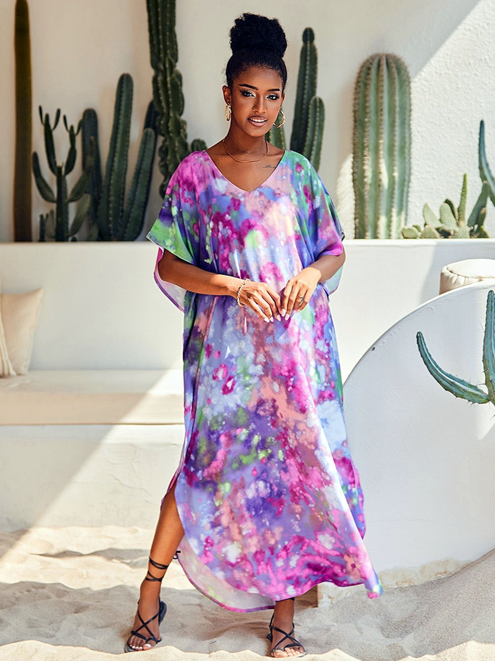 Vestidos caftán holgado de talla grande para mujer, traje de baño holgado para mujer, traje de baño informal de estilo bohemio.