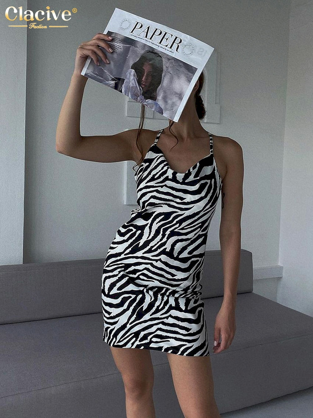Compra Online Vestidos ceñido con estampado de cebra para mujer, Mini Vestidos sin mangas con espalda descubierta. la moda,