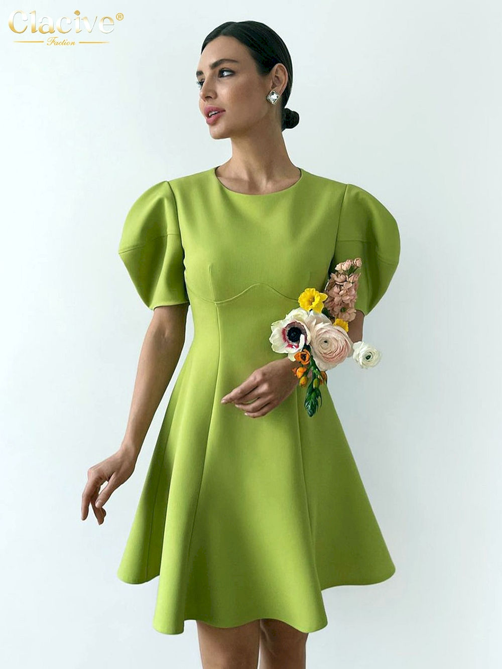 Compra Online Vestidos cortos ajustado de manga corta para verano, Mini Vestidos ajustado clásico de cintura alta para mujer, con cuello redondo, color verde,