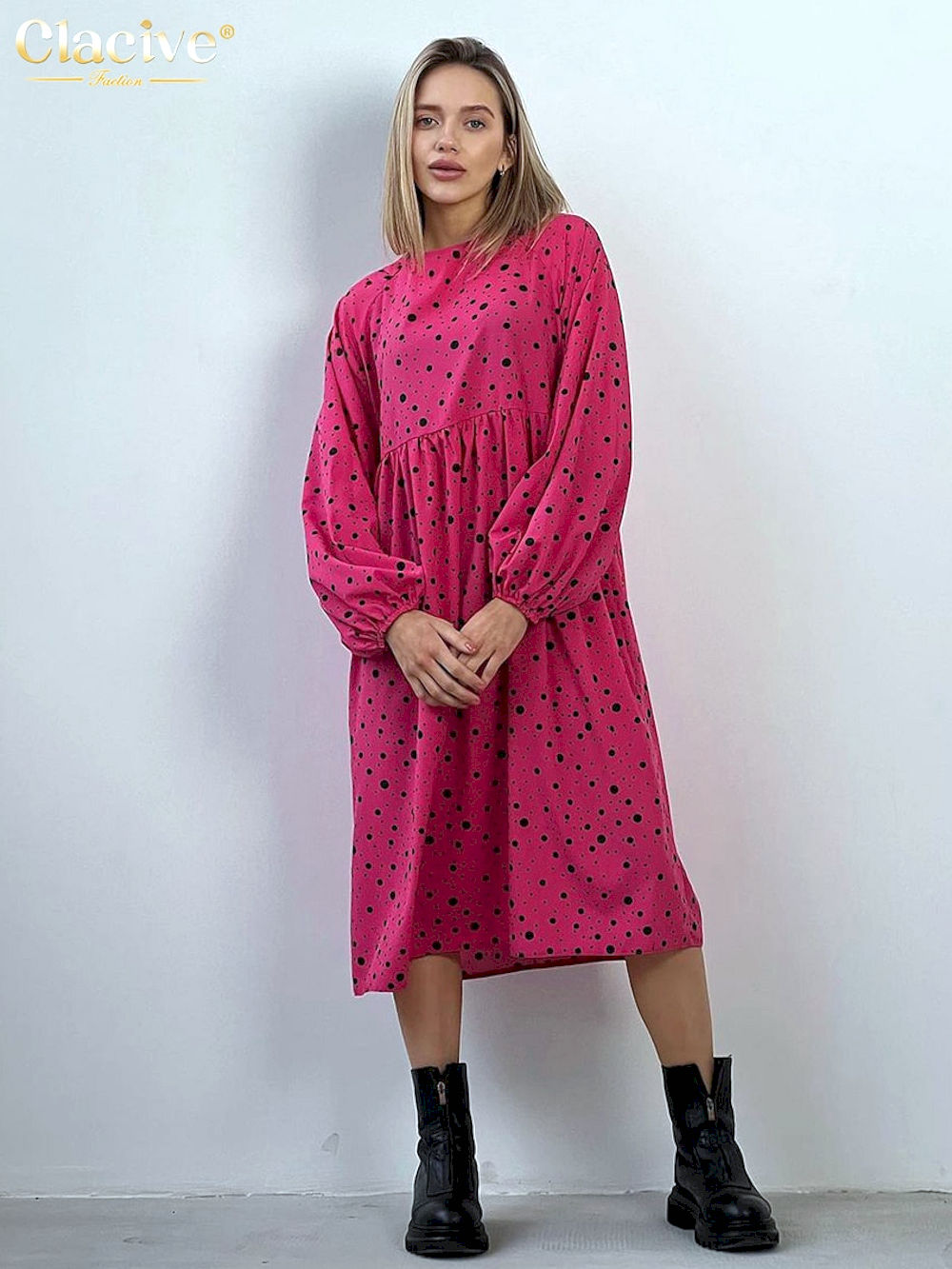 Vestidos de oficina con estampado informal para mujer, Vestidos midi de manga larga con cuello redondo a la moda, elegante, clásico, de cintura alta,