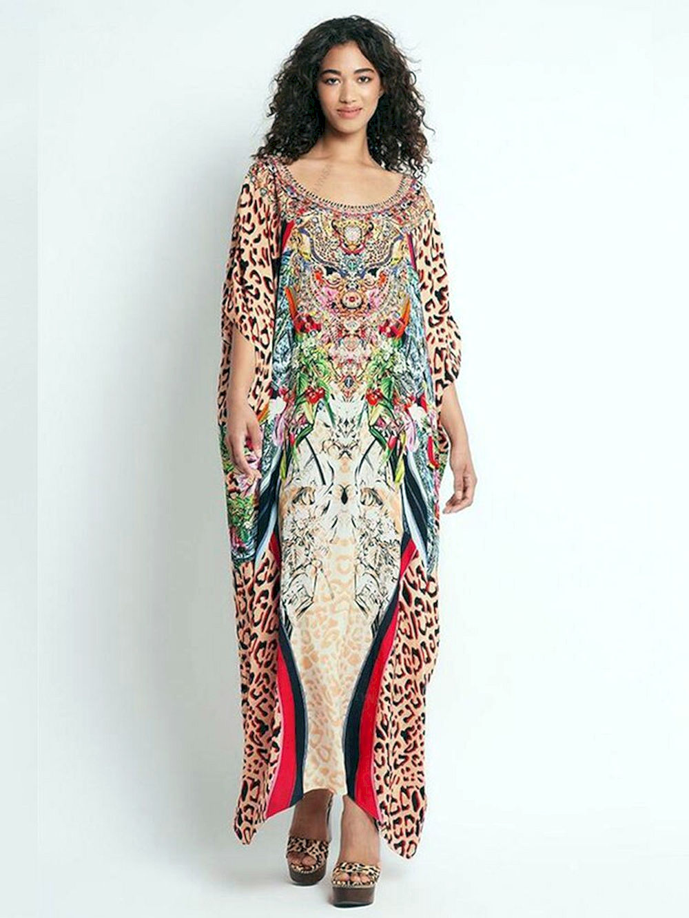 Compra Online Vestidos largos informal con estampado bohemio para mujer, media manga, caftán de talla grande, ropa de playa, traje de baño, qu