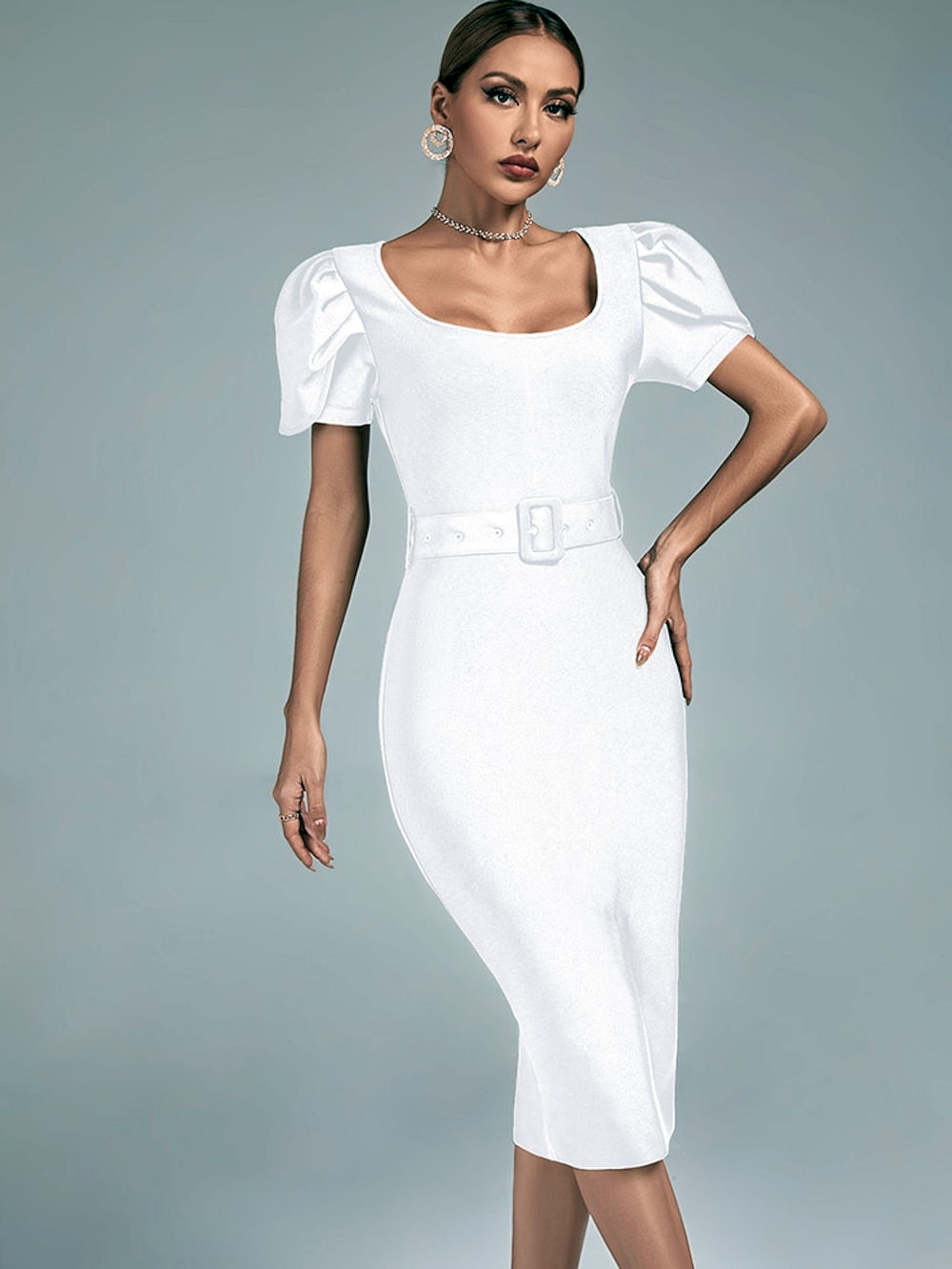 Vestidos midi blanco para mujer, Vestidos ceñido, elegante, sexy, con cinturón y cintura, trajes de fiesta de cumpleaños novedad de verano
