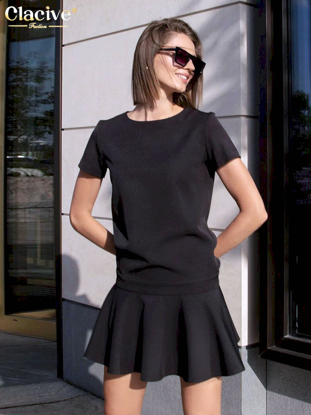 Vestidos negro ajustado para mujer, Mini Vestidos elegante de manga corta con cuello redondo, plisado. la moda,