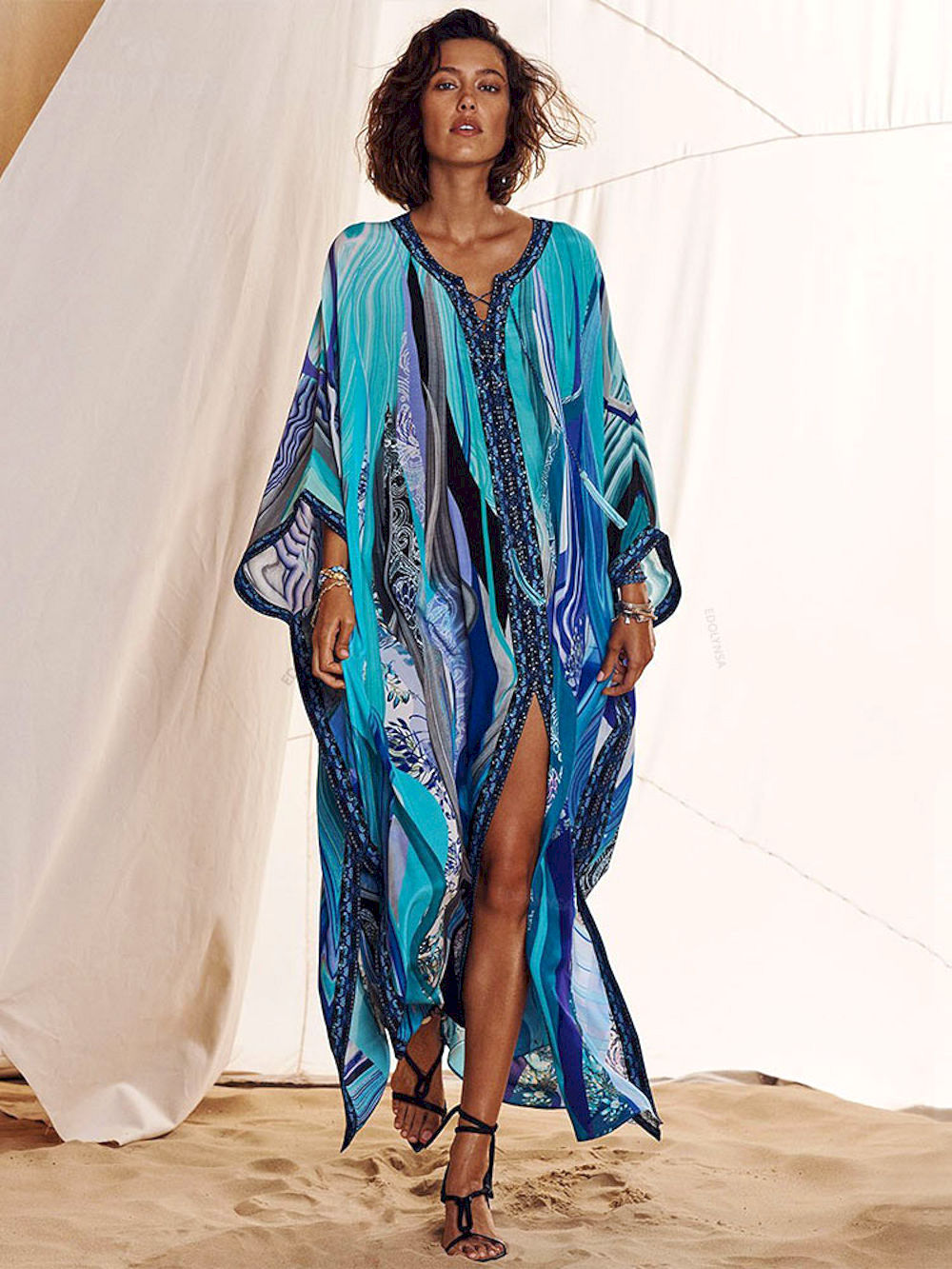 Compra Online Vestidos playero bohemio de secado rápido para mujer, túnica sexy, caftán, pareo.
